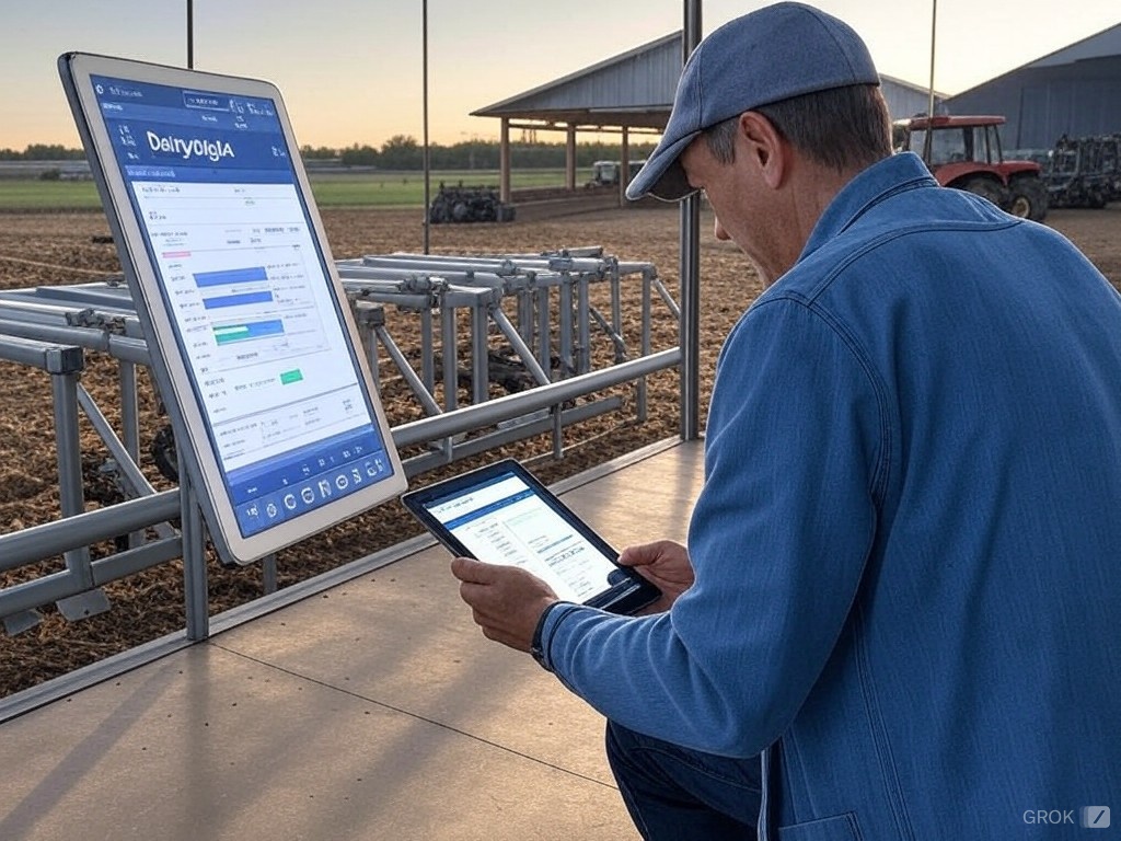 Dairy Tech Innovations in Agriculture interface with real-time dairy farm analytics